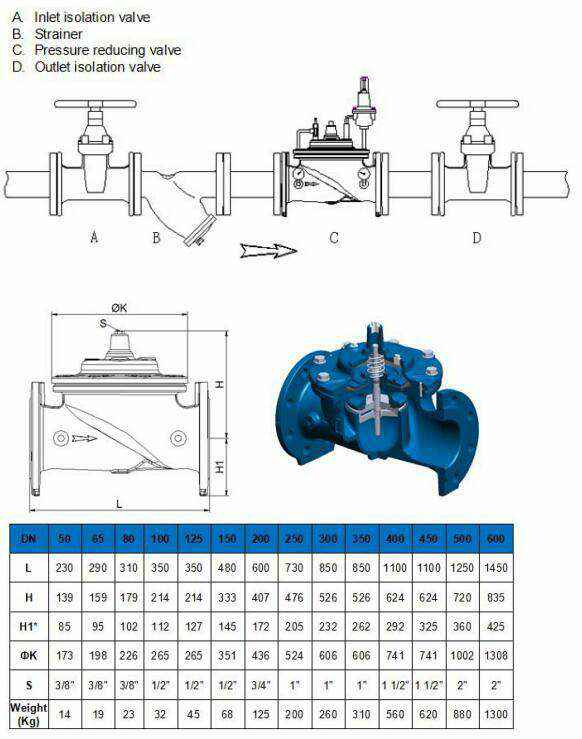 当进出口压差过大时,推荐使用多台减压阀,多级减压,以保护阀门和管道;具体可以咨询工厂。