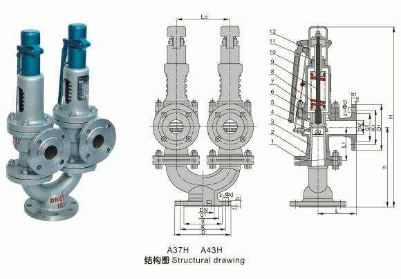A38Y、A43H、A37H型双联弹簧式安全阀除三通(材料为WCB)外,其余零件的材料均和A47H、A48Y型弹簧式安全阀相同。