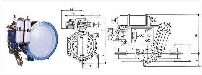 1、本阀的驱动系统为中同压两级驱动装置,该装置体积小而蝶阀启闭速度的调控范围大,初开启段为高压小流量控制,使蝶阀开启瞬间状态平缓,无剧烈波动,完全消除系统内的水锤隐患,然后将切入较快的转动角速度,液压缸将以设定的理想推力与速度将蝶板平稳打开。